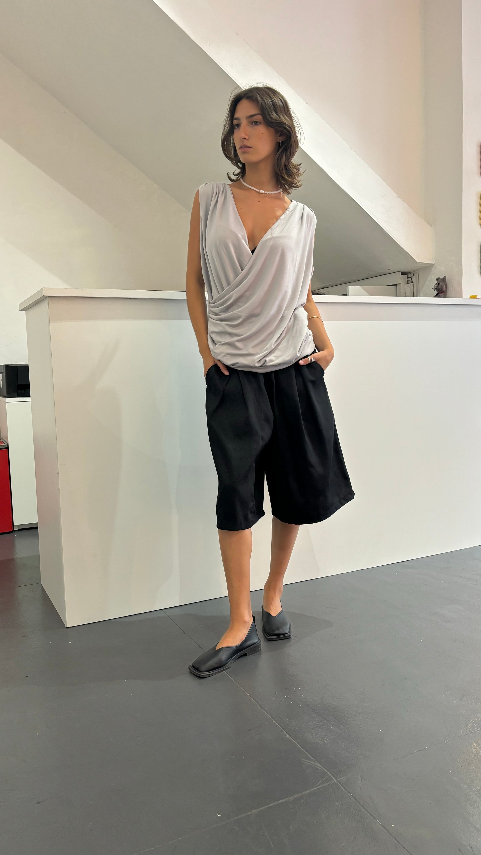 Una pieza que eleva cualquier look. Realizada en un textil ligero. Escote pronunciado que te permite manipular la apertura a tu gusto.